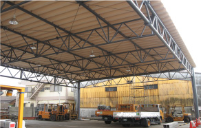 伸縮・走行型テント倉庫